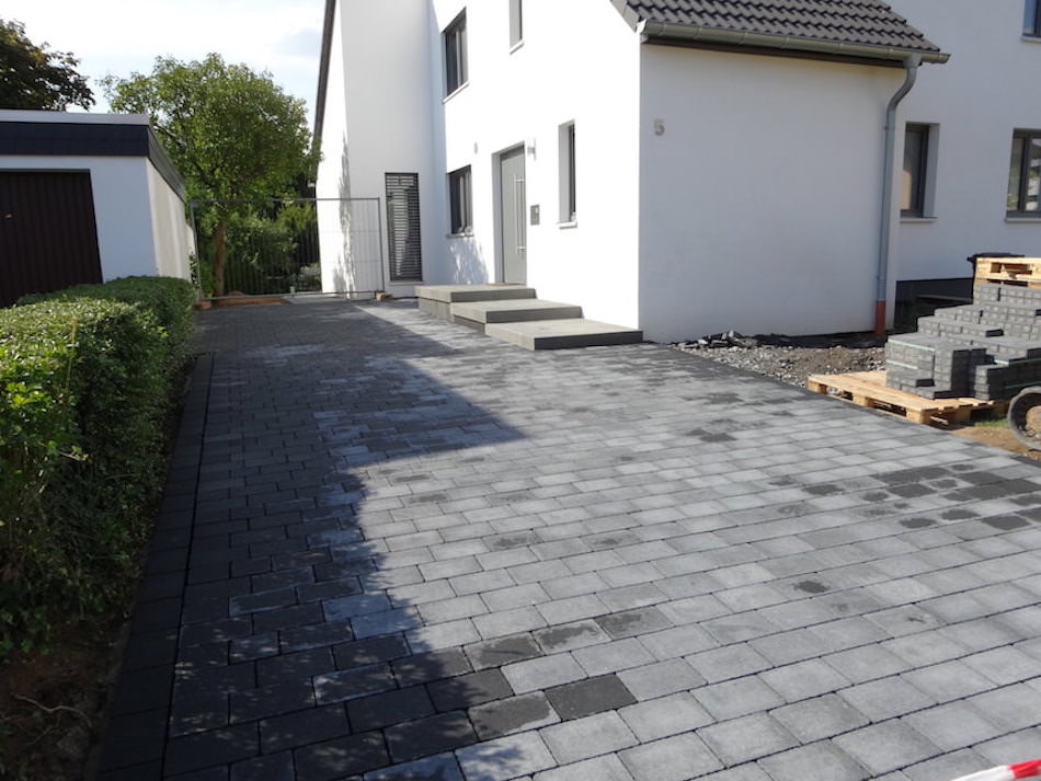 Betonsteinpflaster gibt es in vielen verschiedenen Formaten, Stärken, Farben und Oberflächen. Ab einer gewissen Größe und Stärke redet man dann von Betonsteinplatten.